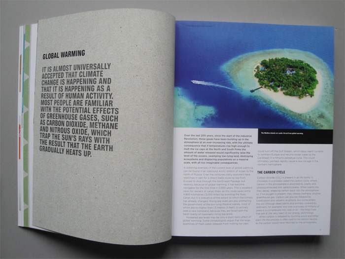 En el primer capítulo «El embalaje y el medio ambiente» nos introducen en el mundo del embalaje y su relación con el calentamiento global. En el segundo capítulo «la búsqueda de soluciones ambientales», como su propio nombre indica, nos explica los diversos métodos para hacer un mundo más sostenible, como son la reducción, la reutilización y el reciclaje. El tercer capítulo trata sobre la problemática de idear un envase innovador y a la vez ecológico, “diseño de envasado creativo con el medio ambiente”.