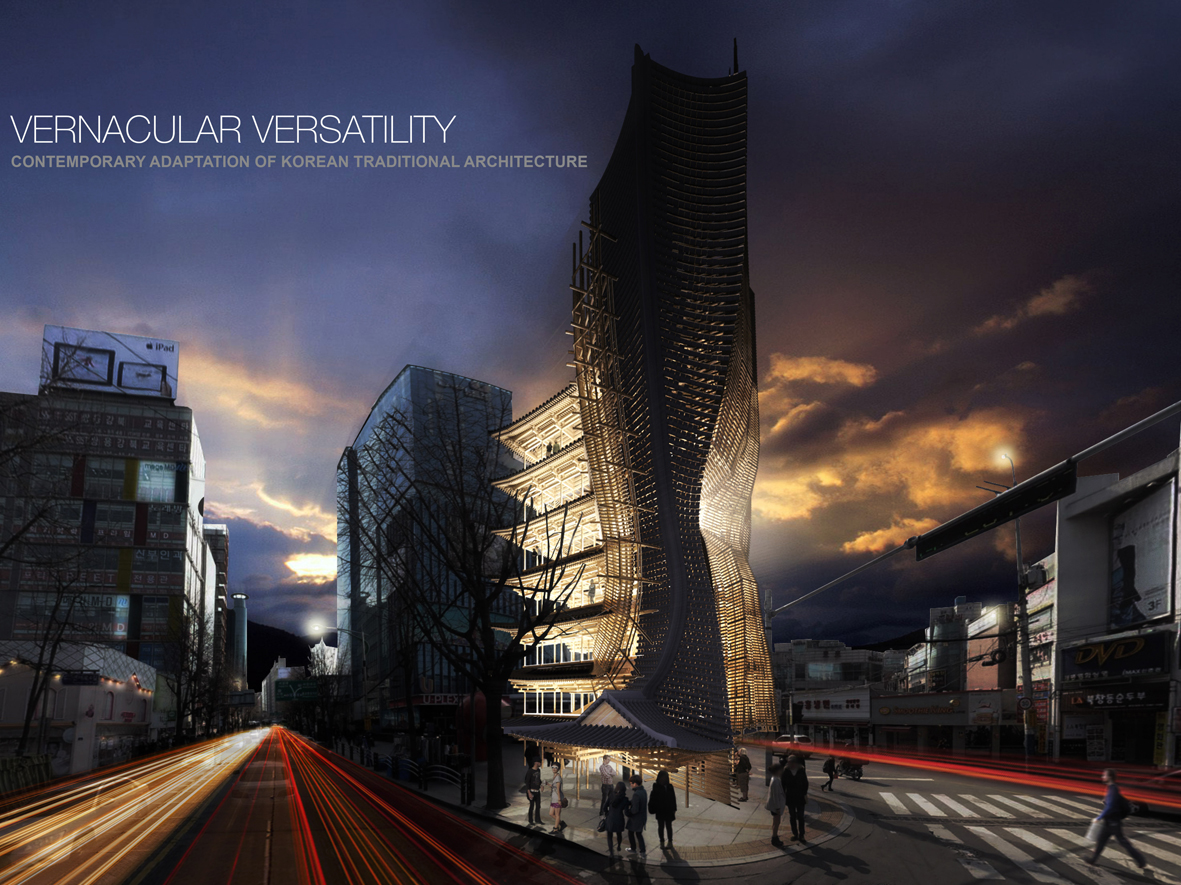 – “Vernacular Versatility” de Yong Ju Lee de los Estados Unidos. La propuesta reinterpreta la arquitectura tradicional coreana en un uso mixto de gran altura contemporáneo. Con un premio de 5000 $ + kit de prensa.