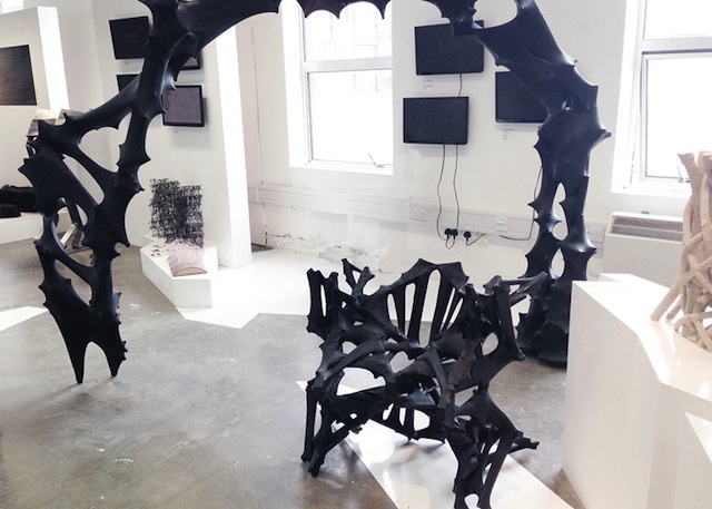 Los palos de madera funcionan como el esqueleto del cuerpo humano, a modo de estructura principal; y la piel es la superficie de ese objeto. Han construido de esta manera una silla y un arco.