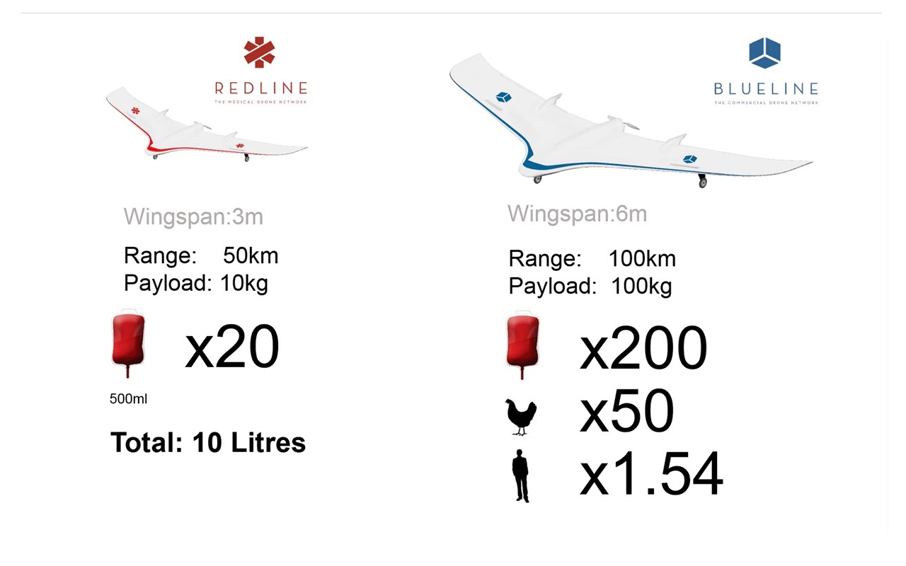 Los drones tienen la utilidad de poder llegar a zonas a las que no existen caminos o carreteras, y trascender barreras geográficas como ríos y montañas. Los drones especializados pueden llevar sangre y otras mercancías de emergencia hasta a 100km con un coste mínimo proveyendo una alternativa importante a los envíos por caminos.