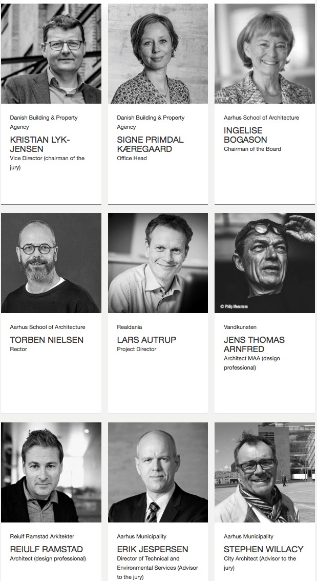 Otro atractivo del concurso es el jurado, nada flashy ni de moda, El rector de la universidad, el que será el constructor, la jefa del board de la escuela, dos representantes de la agencia danesa de la propiedad, dos arquitectos de reconocido prestigio, un representante del patrocinador y el arquitecto municipal y otro representante del ayuntamiento como advisors.