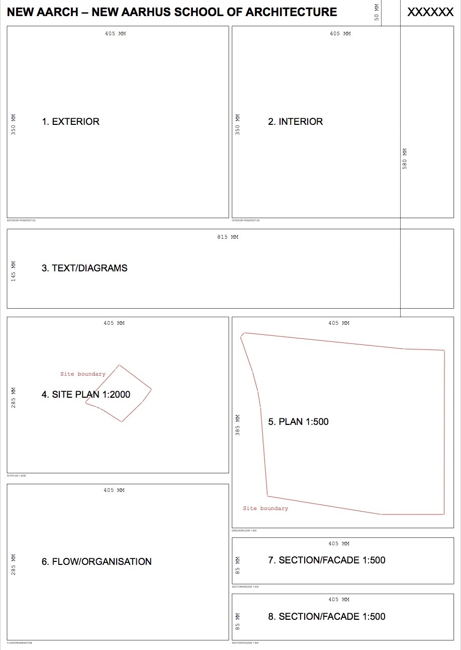 La entrega es un A0 con una plantilla predispuesta,(estos daneses siesque son ….) en la que se especifica hasta el tipo de letra para usar (helvetica, por supuesto… recuerda que cuando Dios firma, firma con helvetica nuestra tipografía favorita)