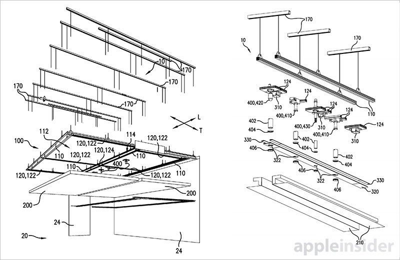 En esta que se ha descubierto recientemente Apple describe un «sistema de techo» funcional en varios tipos de salas, con paneles de luz que pueden ir de un extremo a otro del inmueble con algunas bandas adicionales si es necesario. Ya es más o menos lo que podemos ver en las Apple Store de todo el mundo, pero la patente iría más allá describiendo una evolución de todo ello.