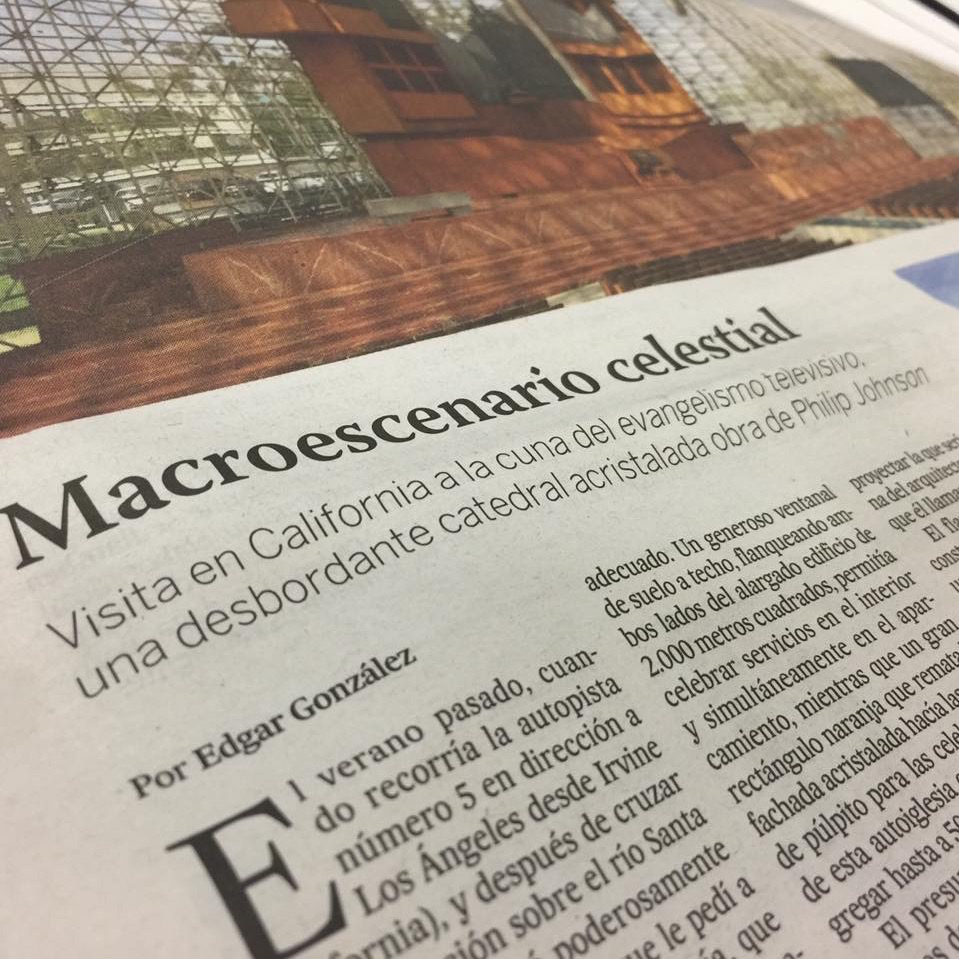 En mi primera colaboración para el diario ElPais, os cuento la increíble y frenética historia del reverendo Robert Schuller, quien a lo largo de 50 años, construyó uno de los complejos eclesiásticos más interesantes y completos del planeta. Con contribuciones de Philip Johnson, Richar Neutra, Dion Neutra, Richard Meier, y actualmente siendo actualizada por Johnson Fain y Rios Clementi Hale.