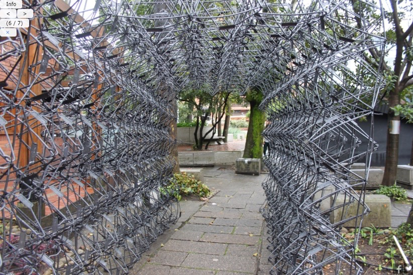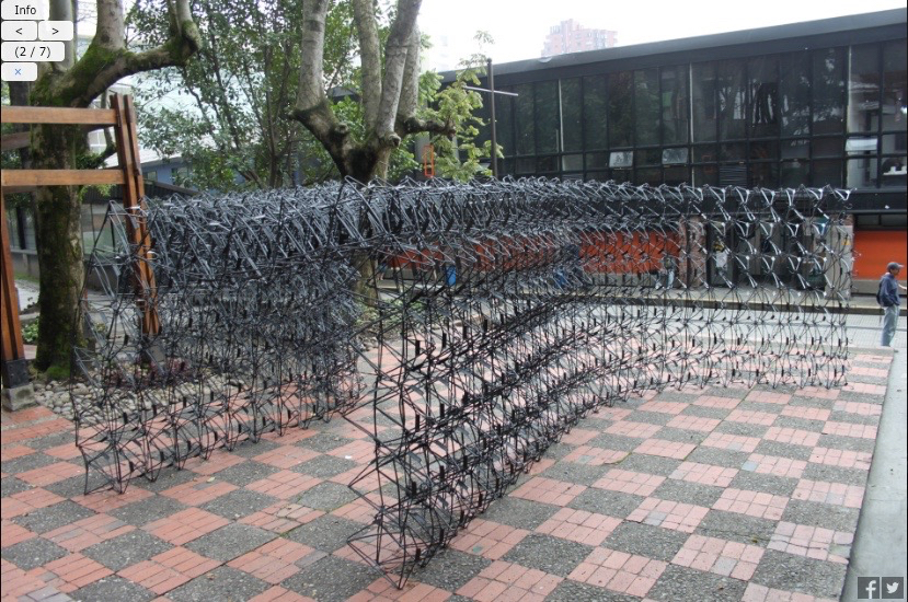 Al ver la propuesta no nos parece sino un revival de este otro pabellón construido hace 5 años en un workshop en la universidad Javierana de Bogotá titulado Perching Bogotá por Estudio Normal.