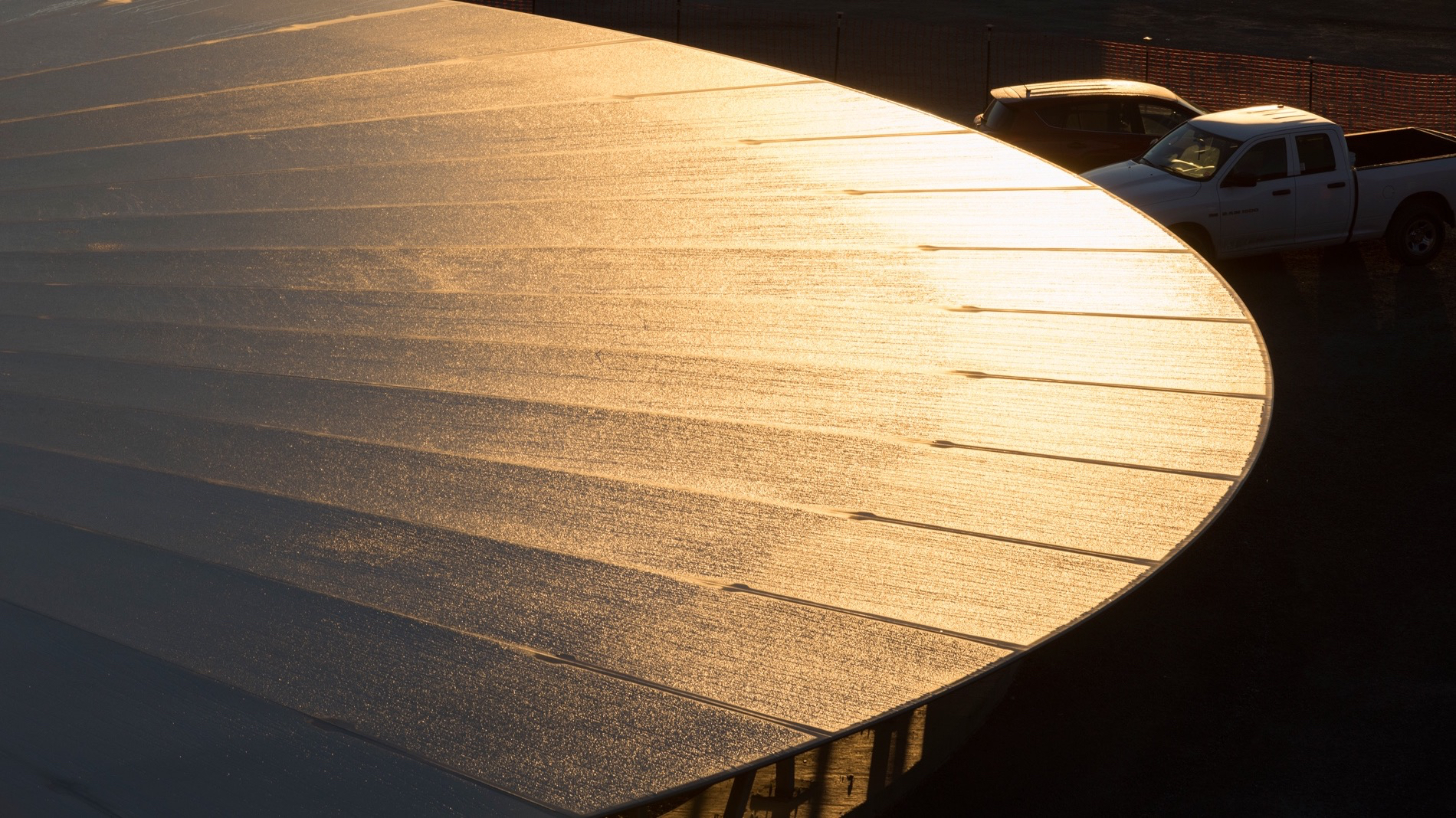 Esta fabricada con fibra de carbono, y es la cubierta de fibra de carbono más grande del mundo.